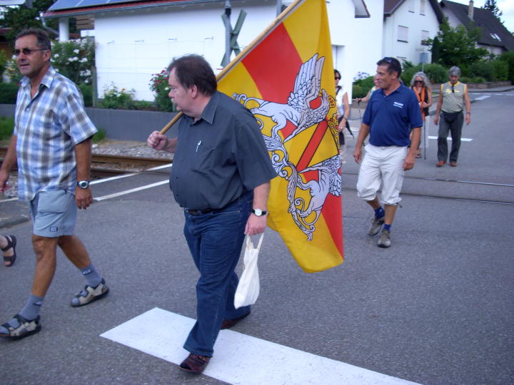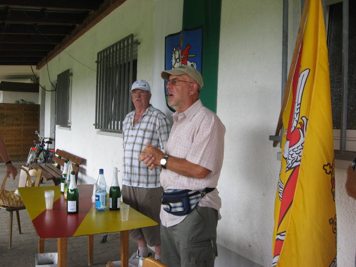 ![]() Bei der Ankunft am Sportplatz wurden wir mit der badischen Fahne und dem Badnerlied begrüßt. |